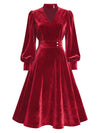 [Vorverkauf] Rot 1950er Schlüsselloch V-Ausschnitt Perle Samt Kleid