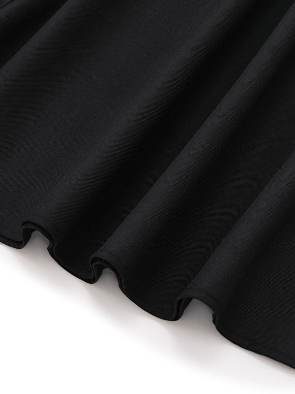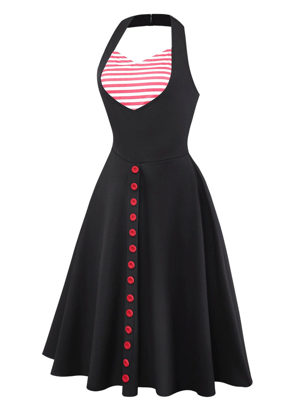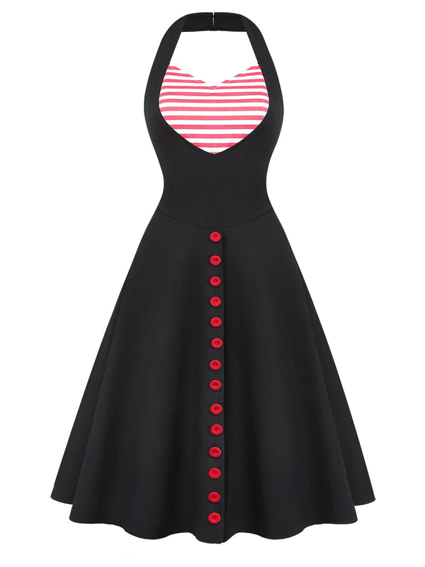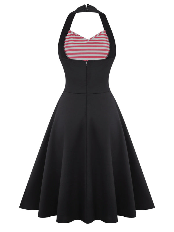 [Vorverkauf] Schwarz 1950er Herzausschnitt Streifen Stricken Halter Kleid