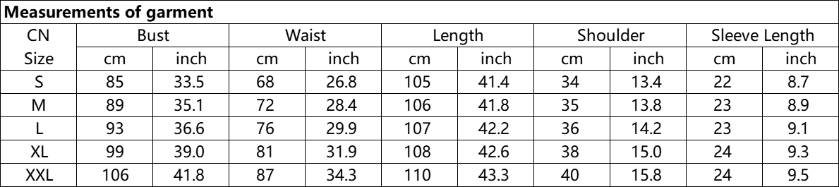Größe: Es sind 5 Größen (S/M/L/XL/XXL) verfügbar. Bitte erlauben Sie 1-2 cm Unterschiede aufgrund der manuellen Messung. Danke für Ihr Verständnis! (Alle Maße in cm und bitte beachten Sie 1 cm = 0,39 Zoll)